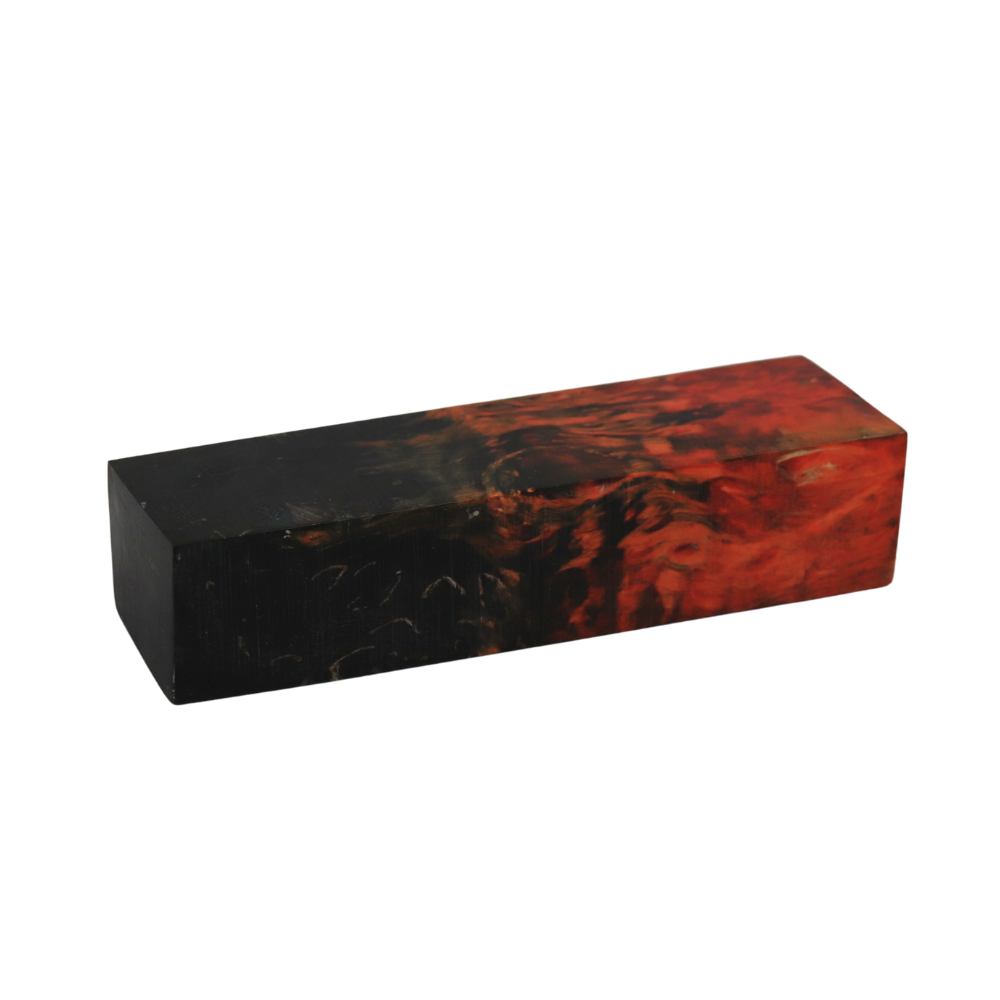 Bloc en bouleau madré stabilisé et teinté noir et orange