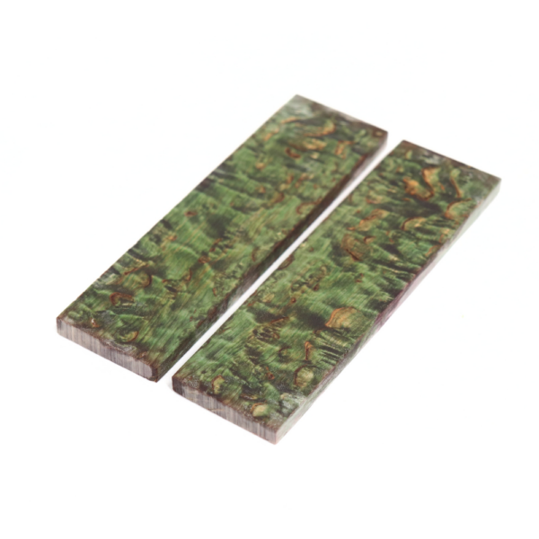 Paire de plaquettes en bouleau madré stabilisé et teinté vert, noir, or