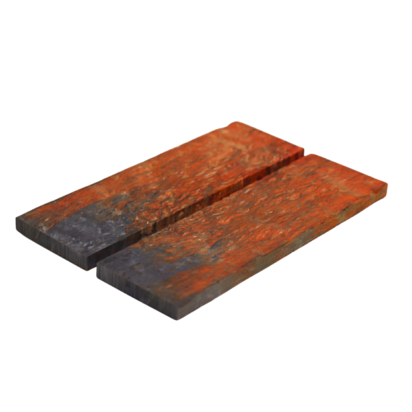 Plaquettes bouleau madré stabilisé et teinté mauve et orange