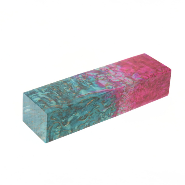 Bloc en bouleau madré stabilisé couleurs Bleu océan et rose