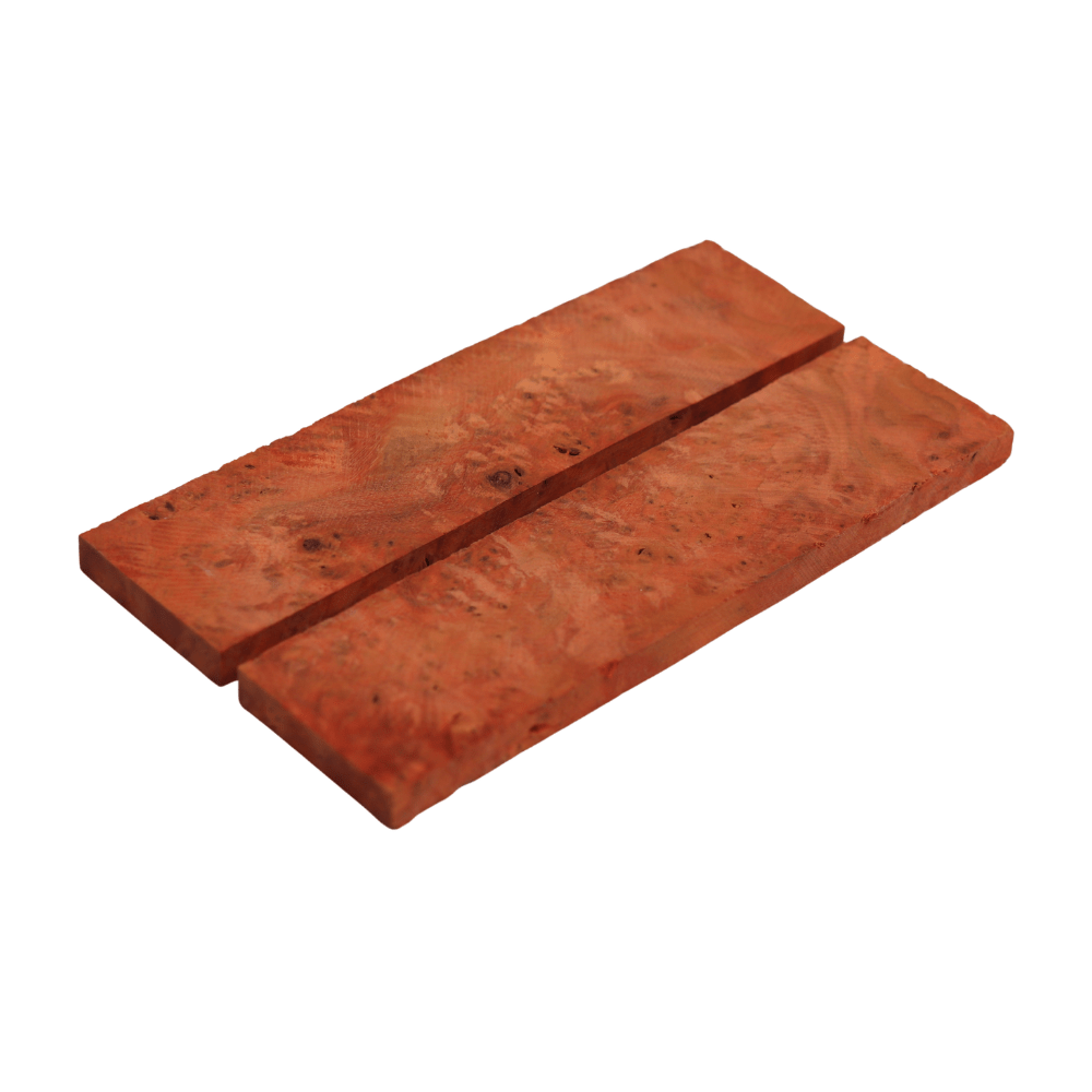 Produit naturel de couleurs orangés et rouge. Paire de plaquettes découpés dans notre atelier à Thiers