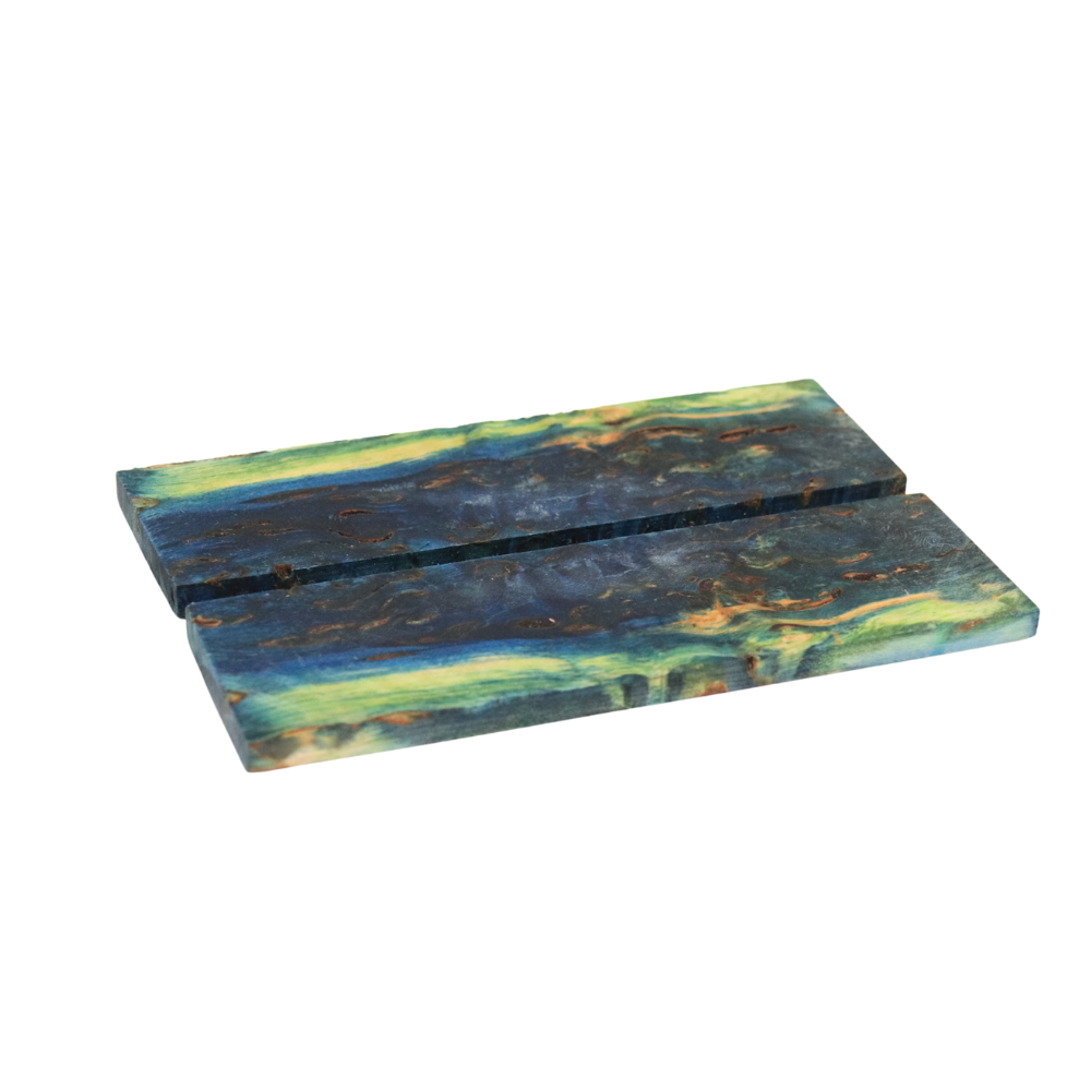 Plaquettes bouleau madré stabilisé et teinté Bleu et jaune